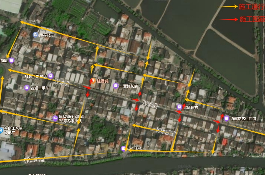 ●村道施工期間僅允許電動自行車通行,其他車輛請從其他路線繞行,路線如圖所示: